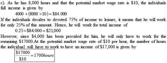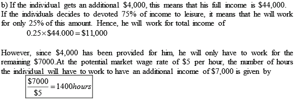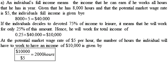 a. What is the individual's full income? If he or she chooses to devote 75 percent of this income to leisure, how many hours will be worked?