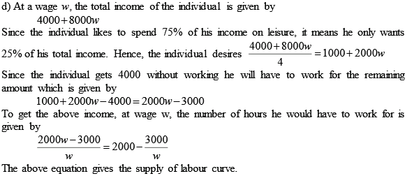 d. Graph the individual's supply of labor curve implied by parts (b) and (c).