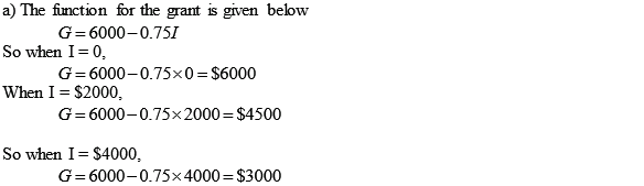 A welfare program for low-income people offers a family a basic grant of $6,000 per year. This grant is reduced by $0.75 for each $1 of other income the family has.