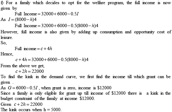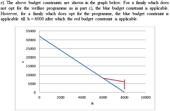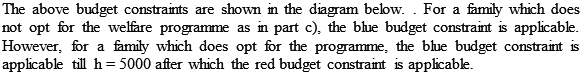d. What is the budget constraint if the family opts to participate in the welfare program? (Remember, the welfare grant can only be positive.)