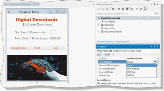 As shown in the accompanying figure, the ____ property of the form specifies which button will be activated when the ENTER key on the keyboard is pressed.