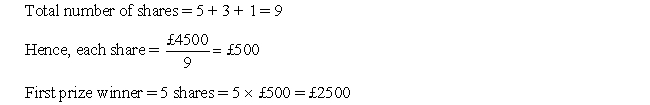 Prize money in a lottery totals £4500 and is shared among three winners in the ratio 5:3:1. How