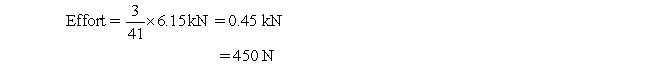 A simple machine has an effort:load ratio of 3:41. Determine the effort, in newtons, to lift a