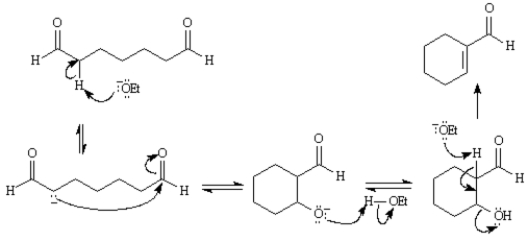 B)an intramolecular aldol condensation