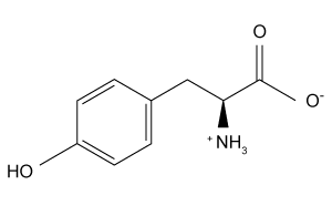 The enzyme phenylalanine hydroxylase catalyzes the conversion of phenylalanine to tyrosine. The disease phenylketonuria (PKU) is caused by an inactivating mutation in the gene encoding phenylalanine hydroxylase. Which structure corresponds to the amino acid that will NOT form as a result of PKU?