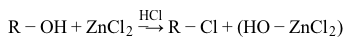 First, the students performed the Lucas test by mixing a few drops of each compound with 2 mL of the Lucas reagent (ZnCl2 and HCl) . This reagent is used to test for secondary and tertiary alcohols. A positive test result is indicated by a cloudy reaction mixture upon addition of the Lucas reagent due to the formation of an insoluble compound by an SN1 reaction with a secondary or tertiary alcohol (Reaction 1) .