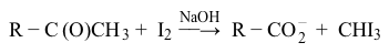 Reaction 2Finally, samples of the compounds were also dissolved in water, followed by the addition of NaOH and iodine. This test is known as the iodoform test, which is used to identify methyl ketones and secondary alcohols. A positive result is indicated by the formation of iodoform (CHI3) , a yellow precipitate (Reaction 3) .