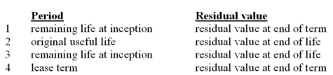 If the title to a leased asset transfers to the lessee at the end of the lease term,what is the period and residual value used by the lessor to depreciate the leased asset?
