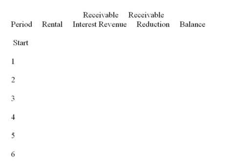 Lamont Company leases computers for a three-year term,at the end of which they are regarded as obsolete with no residual value because Lamont donates them to schools.Rents are collected at the end of each six-month period; the leases qualify as direct financing leases to Lamont (lessor).The computers cost Lamont $20,000 each.Lamont bases the rents on a 16% annual rate.
