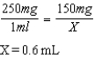 Jimmy, whose BSA is 0.45 m2, is to receive Oncovin 2 mg/m2 IV once per week. The supply dosage available is 5 mg/mL.