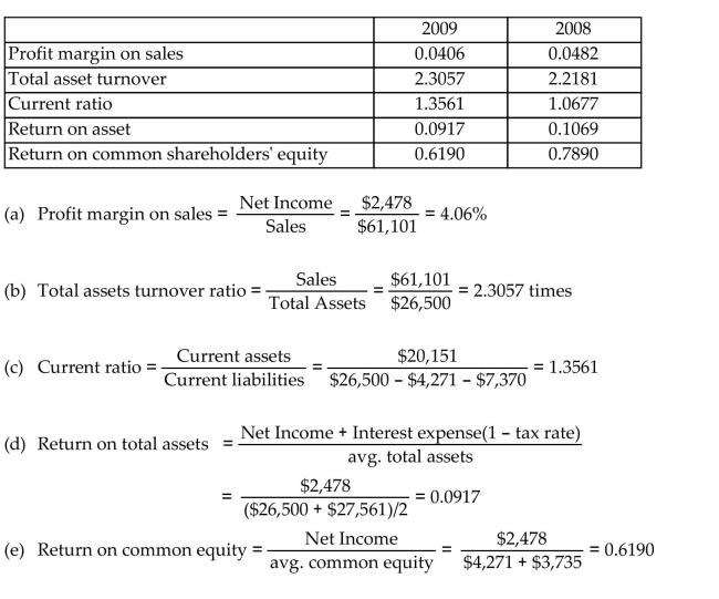 The following shows selected comparative statement data for Dell Corporation. All financial data are as of