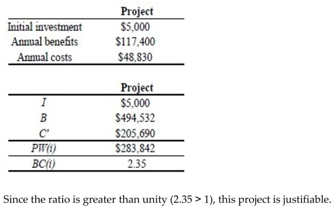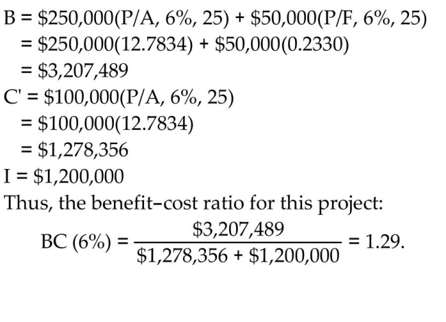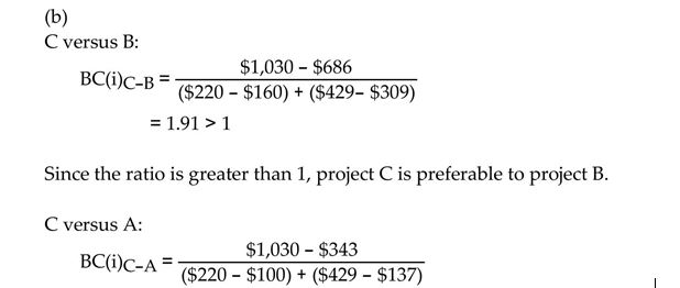 The interest rate is 5%, and the life of each project is estimated to be 40 years.(a) Find the benefit-cost ratio for each alternative.