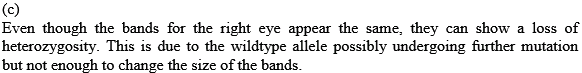 (c) Explain how cells in the tumor in the right eye can have a "loss of heterozygosity" even though the bands are indistinguishable from those observed from nontumor cells.