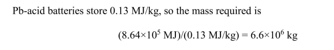 From Table 19.2, the specific energy for Pb-acid batteries is 0.13 MJ/kg. Thus a