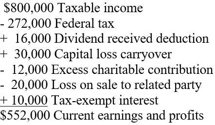 Ardbeg Corporation has $800,000 of taxable income on which it pays a tax of $272,000. In determining its earnings and profits for the year, the accountant used the following information: