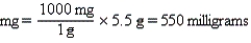How many milligrams are in 5.5 grams?