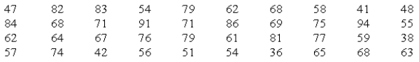 The grades on a chemistry exam for a sample of 40 students are as follows: The grades on a chemistry exam for a sample of 40 students are as follows:   Estimate the percentage of grades that are between 80 and 90. Estimate the percentage of grades that are between 80 and 90.