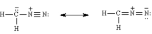 Refer to Exhibit 21-2.Diazomethane is an example of a dipolar molecule;a molecule which is neutral overall but has charges on individual atoms.One resonance form of diazomethane is drawn below.Draw the Lewis structure of the other resonance form of diazomethane.Be sure to include all formal charges.