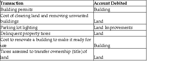 For each of the following amounts paid by a purchaser, determine whether the amount is debited to Land, Land Improvements, or Building.