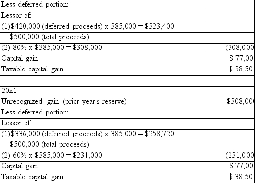 Mr. Yee sold a piece of land in 20x0 for $500,000. He originally paid $100,000 for the land. Selling totaled $15,000. The land is classified as capital property. The purchaser of the land paid Mr. Yee $8 20x0, and will pay $84,000 each year for the next five years.