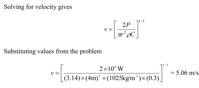 Calculate the average current velocity that is necessary for an 8-m diameter