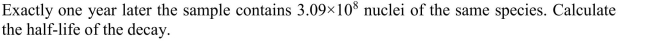 (a) Calculate the half-life of the decay.
