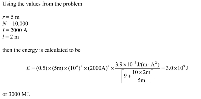 A superconducting magnetic energy storage coil has 10,000 turns of wire,