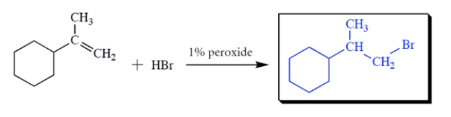 Give the structure of the organic free-radical intermediate formed in the propagation steps in the reaction of the alkene with HBr in the presence of peroxides.  <div style=padding-top: 35px>