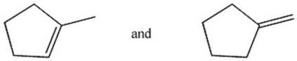 Draw the structures of the two alkenes that react with HBr to yield 1-bromo-1-methylcyclopentane as the major organic product.