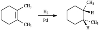 Refer to instructions. Since the two chlorine atoms add to opposite faces of the cyclohexene double bond, we say that the reaction occurs with: