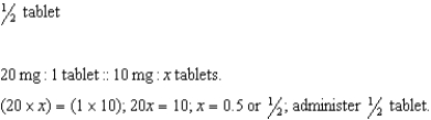 The medication order reads,"Give simvastatin (Zocor)10 mg daily at bedtime,PO." The medication is available in 20-mg tablets.Identify how many tablets will the nurse administer to the patient._______