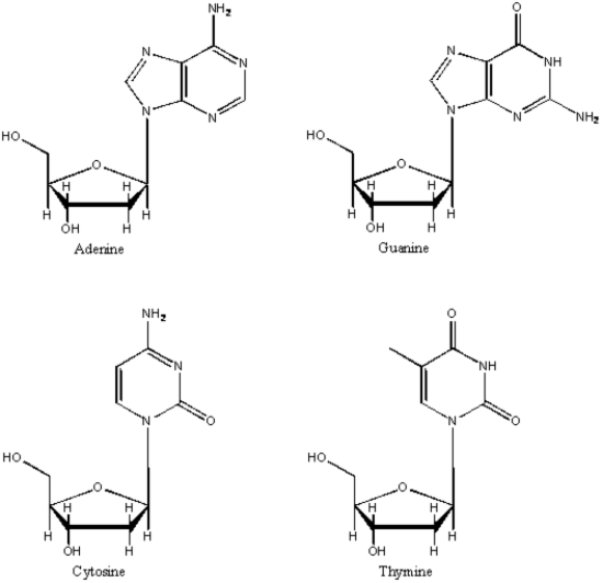 Draw and label the four DNA nucleosides.