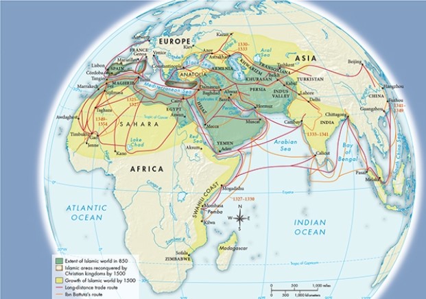 According to Map 9.2, "The Expansion of Islam and Its Trading Networks in the Thirteenth and Fourteenth Centuries," which of the following was the northernmost river reached by Islamic traders by the year 1500?