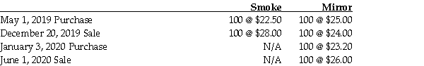 Chi has the following transactions in Smoke Corp. and Mirrors Corp. shares: