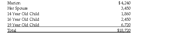 3. Marion Lassiter has Net Income For Tax Purposes of $132,450, all of which is rental income. Her husband has Net Income For Tax Purposes of $1,600. They have three children, ages 14, 16, and 19. All of these children are in good health and continue to live at home. The 19 year old child has Net Income For Tax Purposes of $8,460. During the current year, Ms. Lassiter pays the following medical expenses: