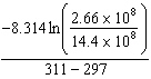 K = 2.66×108 mol/L × s at 24 ° C and k = 14.4×108 mol/L × s at 38 ° C. Given (R = 8.314 J/mol × K) , the activation energy for this reaction in J × mol - 1 can be calculated using: