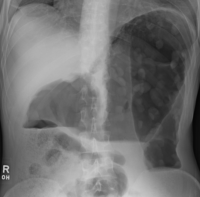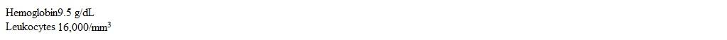 A 44-year-old previously healthy woman comes to the office due to 2 months of low-grade fever, abdominal pain, and intermittent bloody diarrhea. Her pain has dramatically increased over the past 48 hours. The patient takes no medications and has no allergies. She has lost 4.5 kg (10 lb) over the past 8 weeks. She has no recent travel history. Temperature is 38.9 C (102 F) , blood pressure is 102/70 mm Hg, pulse is 118/min, and respirations are 22/min. Examination shows pale and dry mucous membranes. Abdominal examination reveals distension and diffuse tenderness. Laboratory results are as follows: