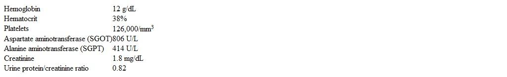 A 37-year-old primigravid woman at 34 weeks gestation comes to labor and delivery from the office due to a blood pressure of 152/96 mm Hg. The patient has a spontaneous dichorionic diamniotic twin gestation, but her prenatal course has otherwise been uneventful, with normal blood pressure measurements throughout the pregnancy. She has no known medical conditions and has exercised throughout her pregnancy. The patient reports no contractions, vaginal bleeding, or leakage of fluid. She has no headaches or visual changes. Repeat blood pressure is 150/102 mm Hg. Deep tendon reflexes are 3+. Nonstress test is reactive for both fetuses. Laboratory results are as follows: