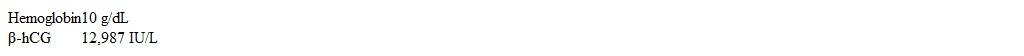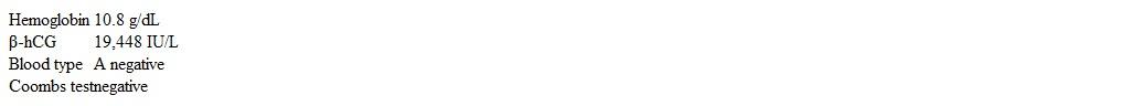 A 24-year-old primigravida comes to the emergency department for evaluation of pelvic pain. The pain began a week ago as mild cramping but is now constant and severe. The patient had a positive home pregnancy test 3 weeks ago and has also recently had some brown vaginal spotting. She has no chronic medical conditions or previous surgeries. Blood pressure is 110/60 mm Hg and pulse is 108/min. The abdomen is tender to palpation over the left lower quadrant and rebound is present. Initial laboratory results are as follows: