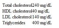 A 55-year-old woman comes to the office for a preventive visit. She has no concerns at this time. The patient experienced a myocardial infarction 2 years ago. Current medications are metoprolol and aspirin. The patient does not smoke or use alcohol. Blood pressure is 125/80 mm Hg and pulse is 65/min. Physical examination is unremarkable. Fasting blood glucose level is 100 mg/dL. Laboratory results are as follows: