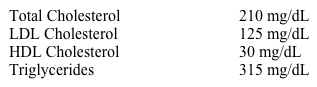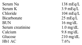 A 47-year-old Caucasian man comes to the office for a follow-up visit. He was recently diagnosed with diabetes mellitus type 2, and was started on a low-carbohydrate diet six months ago. He also has obesity, hypertension and hyperlipidemia. He is a financial advisor. He does not use tobacco or illicit drugs, but drinks alcohol occasionally. His medications include enalapril, simvastatin and hydrochlorothiazide. Examination shows no abnormalities. His laboratory test results show the following: