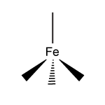 -Which of the following depicts iron's coordination geometry when oxygen is bound to heme b in hemoglobin?