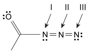 What are the correct formal charges for nitrogen atoms I, II, and III, respectively, in the azide below?