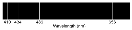 The emission line spectrum of hydrogen displays four spectral lines in the visible region of the spectrum.