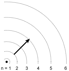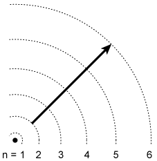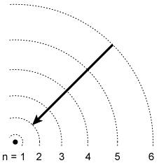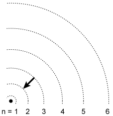 According to the Bohr model of the atom, which of the diagrams below represents the spectral line at 410 nm in the emission line spectrum?